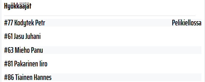 Luulen että OJ on kyllä nostanutIhan katastrofaalinen rosteri siellä. Eikö siellä nyt kukaan uskalla nostaa kissaa pöydälle mikä siellä mättää? Mikään sattuma ei selitä tuota vuosien loukkaantumiskierrettä. Janne Pesonen on kyllä vetänyt aivan uudet pohjalukemat tuossa urheilujohtajan pestissään.