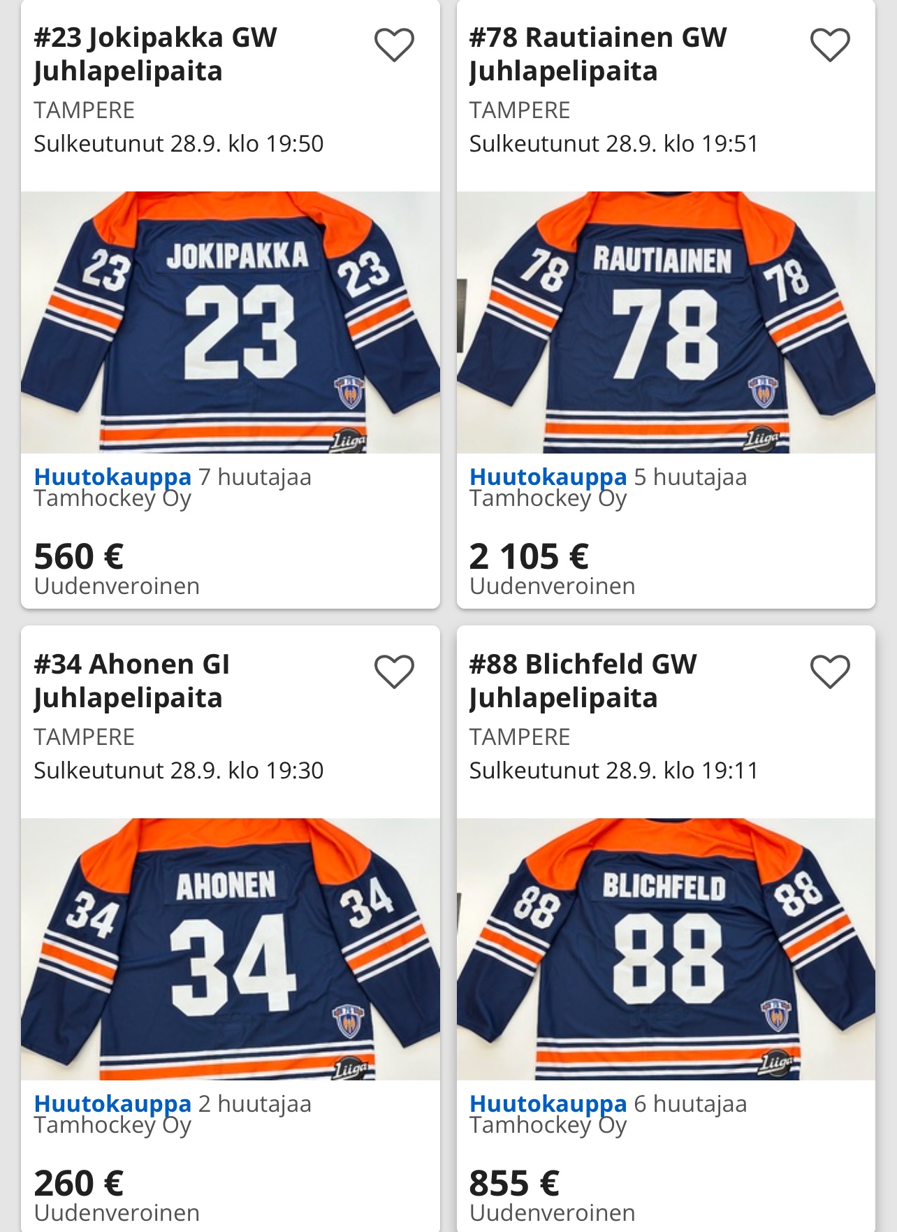 Itsekin toki yllätyin, et Rautiaisen pelipaidoista maksetaan tuhansia/kappale.
