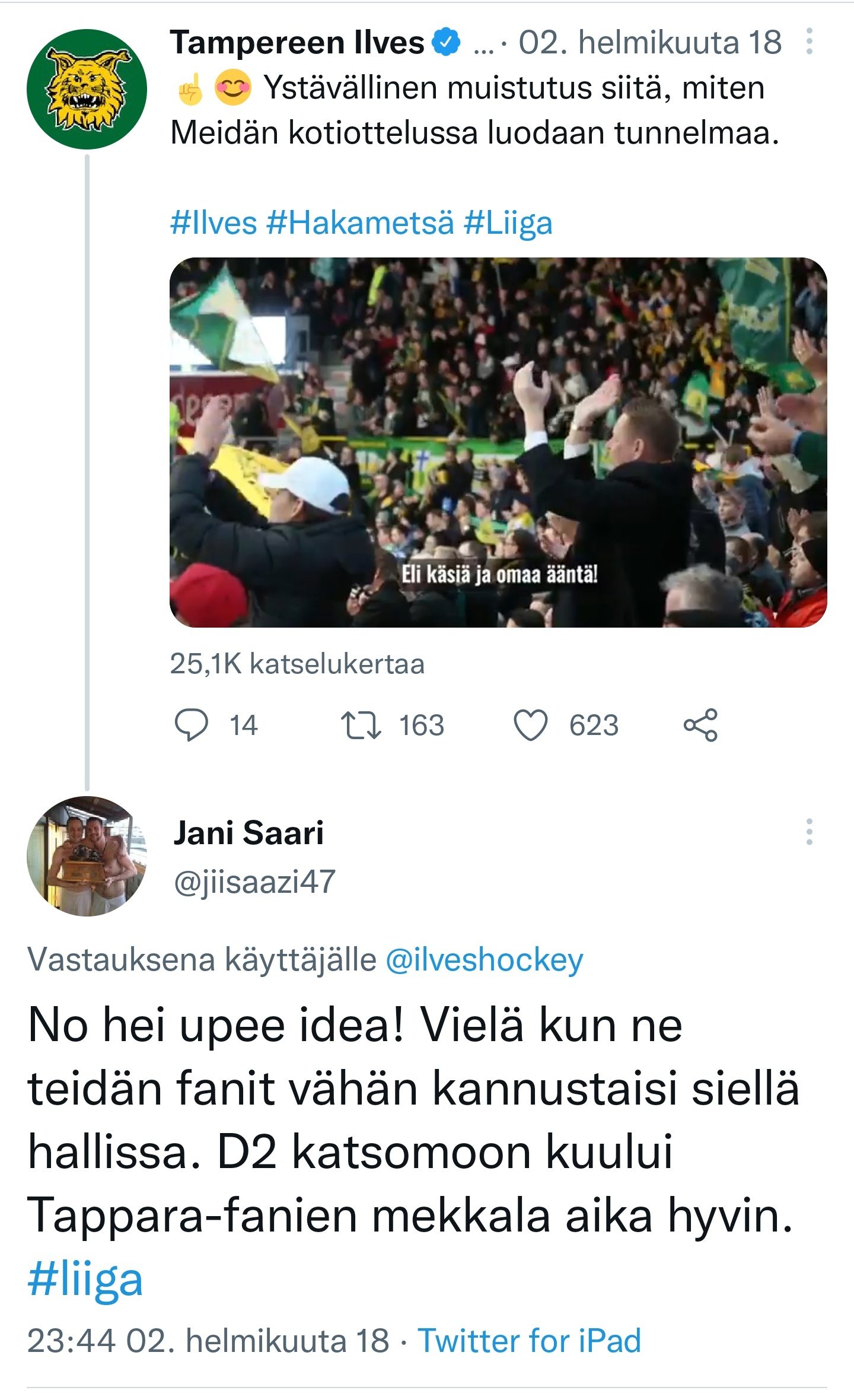 Alkukaudesta oli sellainen olo, että Ilves on vahva päästessään johtoon, mutta jahtaaminen on hankalaa. Tämän vuoden puolella ollaan näytetty, että Ilvestä vastaan peli ei ole ohi vaikka vastustaja johtaisi kuinka.