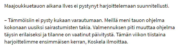 Jos poissaolijoita on Masin, Salmela, Czuczman ja Aho, niin kyllähän se aika ohkaista on. Siihen vielä joku Lancaster ja Lööf kotona nessupaketin kanssa, niin hiki tulee veskarille lauantaina.