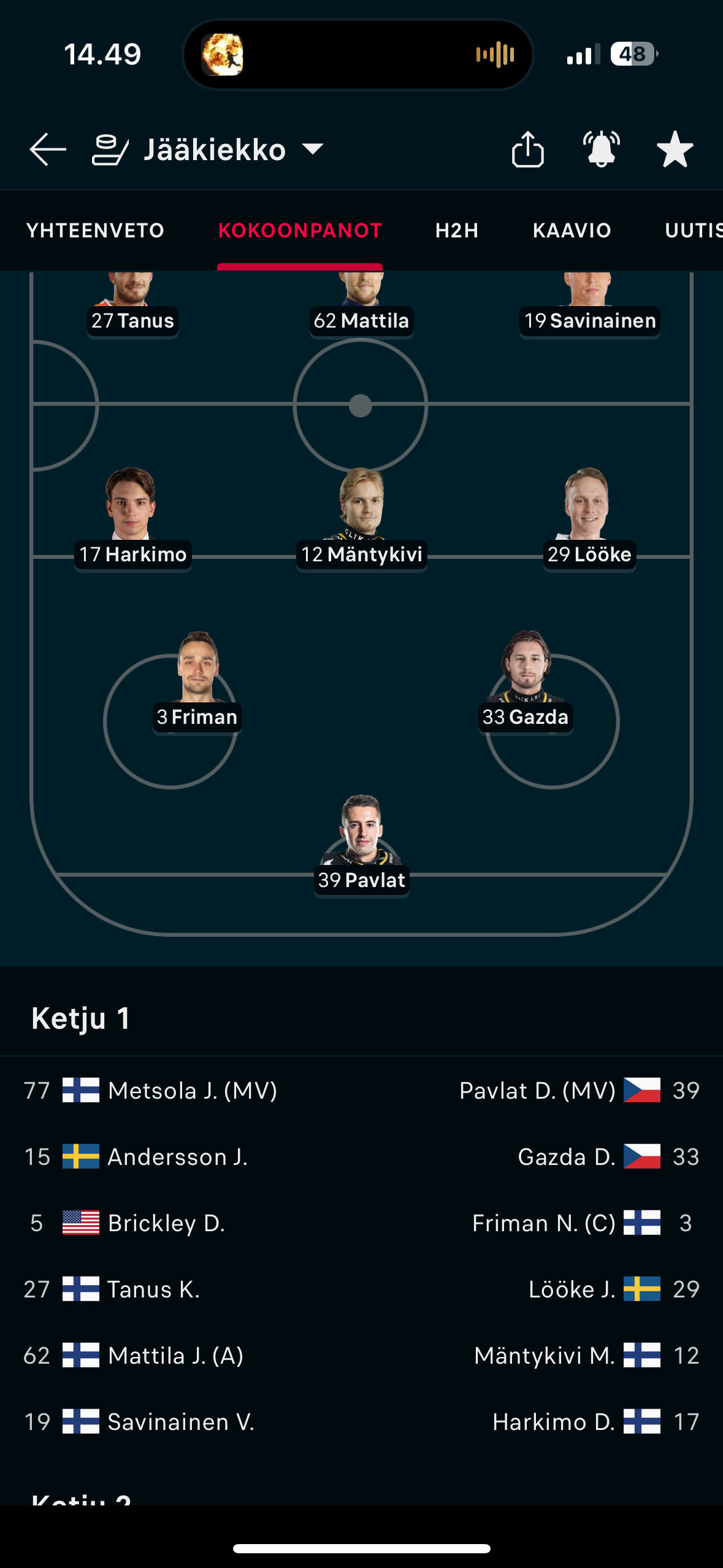 Tässä ehkä kevään paras kokoonpano. Suomea en laittanut ykköseen, koska hyvä saada tuntumaa ensin kolmosesta. Parikka ja Kappe ei mun papereissa mahdu tän hetken kokoonpanoon. Tässä myös hieman omaa twistiä sillä, että pistin Baun ilman ketään mutta siihen. Luotto on tällä hetkellä Bauhun suuri. Myös Kos vähän niin ja näin, koska valmennuksella moni menee edelle. Väiskille pitäis mun puolesta antaa vastuuta nyt jopa seuraavassa pelissä, koska on parantanut kevättä kohden ja viime keväänä oli eläin. En lähtisi muokkaamaan kakkosta koska toiminut sen verran kauan että luottoa on.