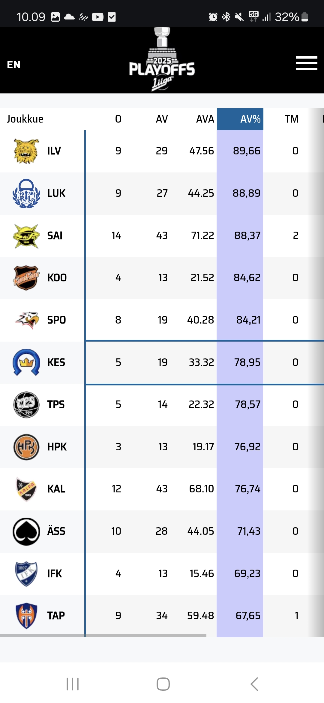 Se on kun mikään ei riitä. Mitenhän ensi kaudella käy kun Merikivi on pois..Tässä runkosarjan ja pleijareiden ylivoima- ja alivoimatilastot. Ollaan paras erikoistilannejoukkue sekä runkkarissa, että pleijareissa, mutta Merikivelle kenkää, koska eikoistilanteet ei suju. Kalpaa vastaan yv-maalit 6-0.