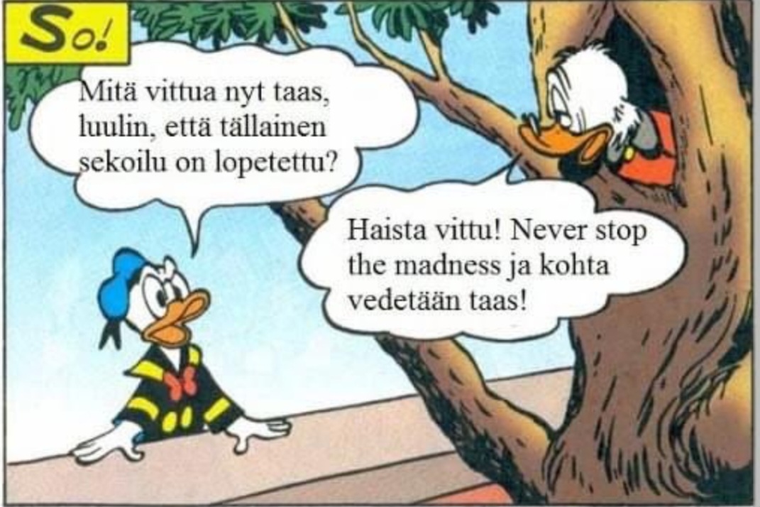 Kahden päivän aikana päävalmentaja loikkaa klubiin, utj karkaa Ruotsiin, eikä kukaan tiedä mitä vittua missään tapahtuu, koska pj:llä on tukka kipeä ja toimitusjohtaja on lomalla. Vittu mitä kummelia