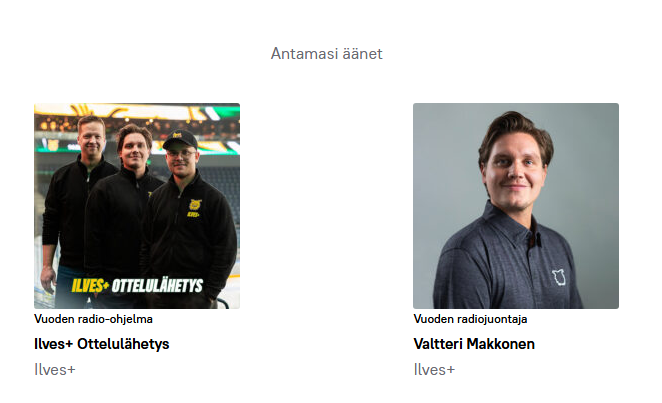 Siellä on taas Ilves+, Mikko Aaltonen ja villikortti Makkonen ehdolla RadioGaalassa. Käykääs ny äänestämässä