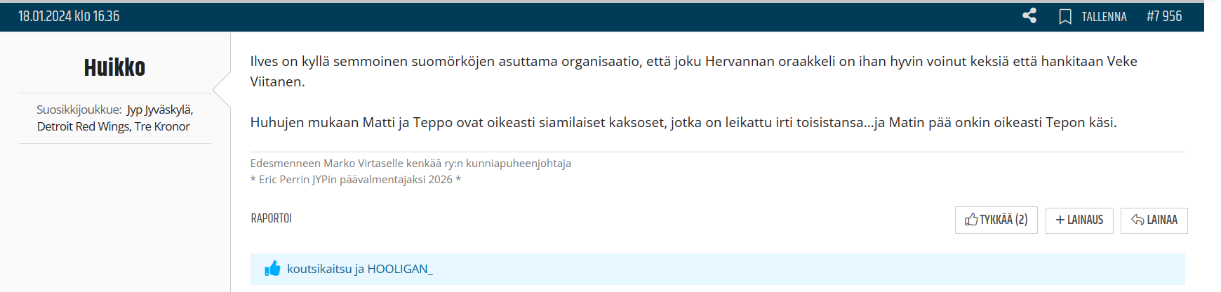 Jaa tää on se jätkä, ei sitten mitään. Hajaantukaa, täälä ei ole toden totta mitään nähtävää. Jypin ketjussa kyllä käy keskustelu kuumanaNäinpä. Sama kaverihan muistaakseni meinasi, että Niku ei suostuisi puhumaan Jypin kanssa enää kuin lakimiehensä välityksellä.