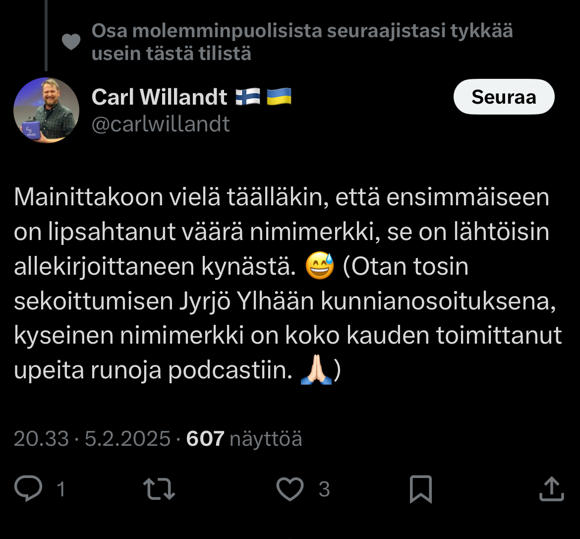 Sitten taas Saarisen osuuden tulen kuuntelemaan aivan varmasti vielä uudestaan.