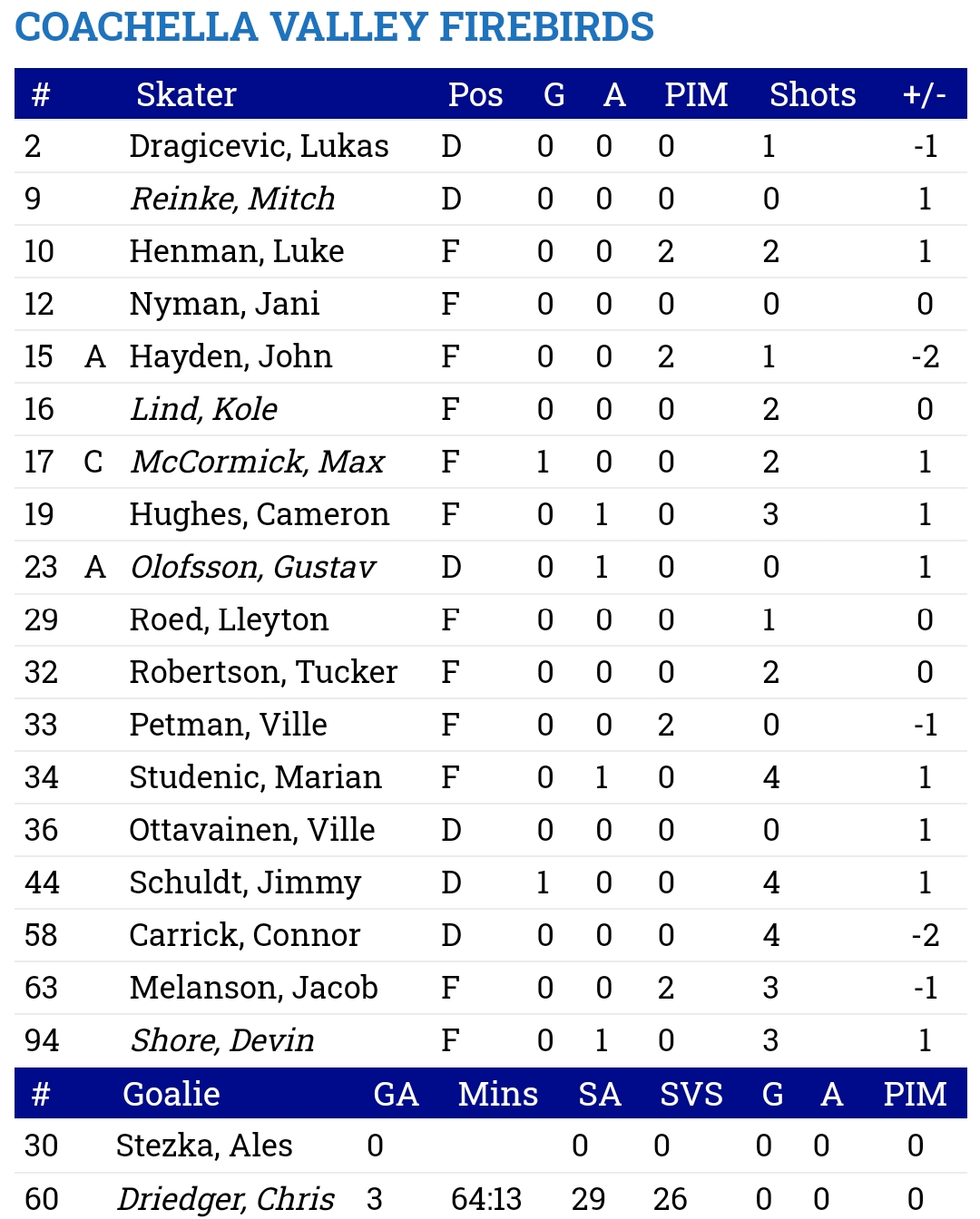 Ei tilastomerkintöjä ja AHL:n sivuilta ei löydy peliaikoja.