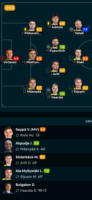 Ihan ok debyytti. Luonnollisesti vähän kommunikaatioasioita kentällä haettiin, kun sekä Akpudje että Seppä tuohon ovat mukaan tulleet. Mutta kaverin oma pelaaminen tosiaan mukavan jämäkkää ja hyvä maku jäi tästä.