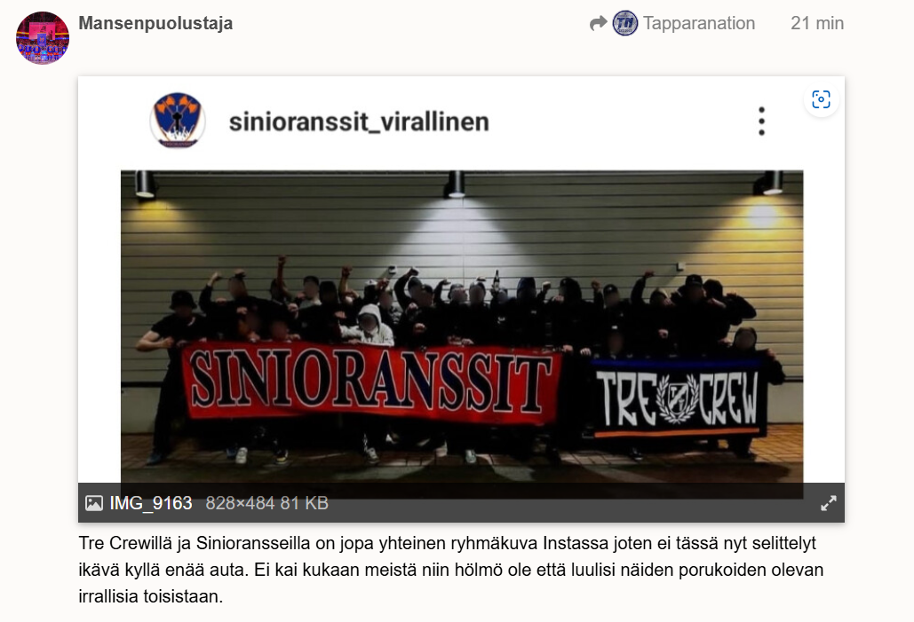 Lisäksi ainakin yksi alkuperäisessä postauksessa esillä ollut mm. 88-natsitunnuksistaan tuttu henkilö on liittynyt sinne naapurifoorumille vuonna 2015, eikä ole mikään pikkulapsi, ja on ainakin tämän foorumin Tappara-käyttäjän mukaan SO:n jäsen.