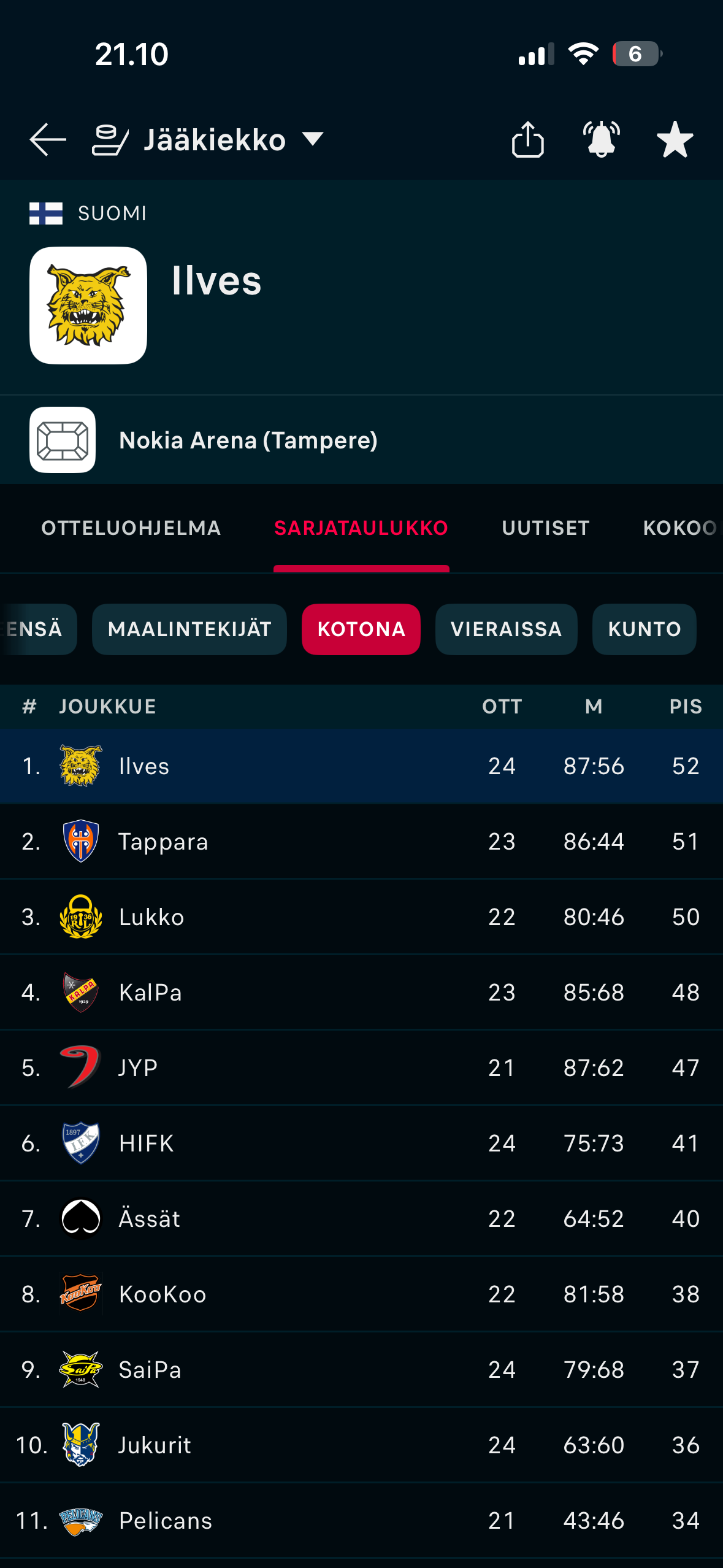 On kotipelis paljo muutaki isoa juttua menos. Parikan pelimäärät, Johanssonin maalimäärät nyt ainaki.Perjantain KooKoo peli on kyllä todella tärkeä 4 parhaan joukkoon pääsemiseksi.