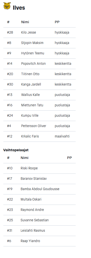 Ei kommentteja kokoonpanoon ja mahdollisiin poissaoloihin liittyen.