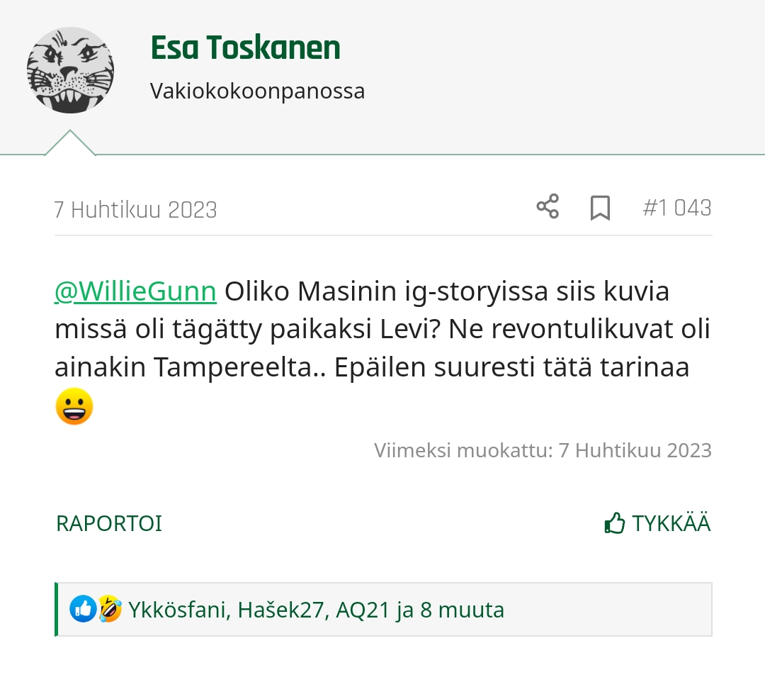 Tää "Leviltä korona" on kyllä huikein esimerkki tästä internetin voimasta. Tältä foorumilta huhu lähti liikkeelle, mutta kun täälä joku osoitti, että se Langhamerin revontuli kuva on otettu rauhaniemestä niin korjaus ei enää levinnytkään alkuperäisen huhun tavoin vaan tää virheellinen tulkinta levistä muuttui totuudeksi