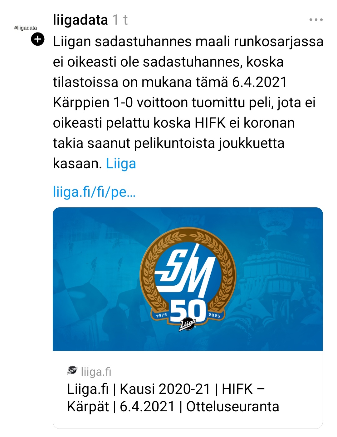 Sellasia tavallaan maalejaJa kun vielä Rautakorpea vastaan tehdyt ohhoh-maalit poistetaan, ei kasassa taida olla vielä kuin 98000 maalia.