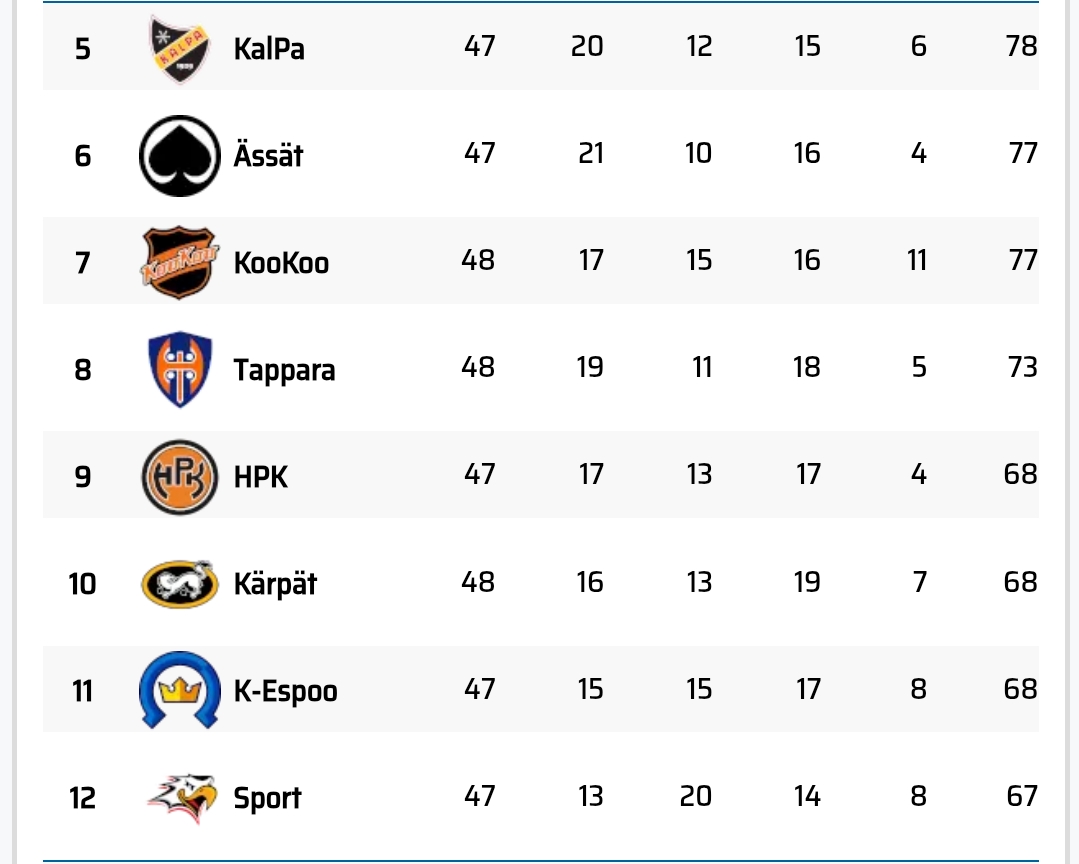 Jos naapuri jatkaa samaa rataa niin kohta sekin samassa nipussa.Tuli mielekiintonen suma tohon 9-12 eli HPK,Kärpät,K-Espoo ja Sportti.