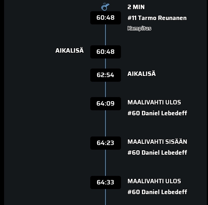 Tuohan on tuttua LämsälleEn olisi vihainen jos tämmösessä tilanteessa ylivoimalle otettais maalivahti pois vaikka kellossa ton verran aikaa.