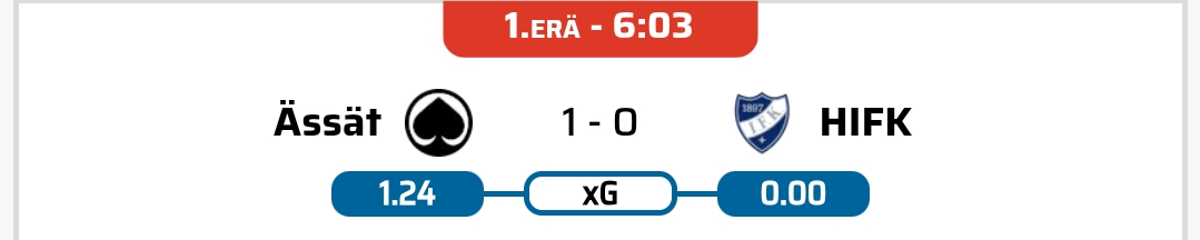 Miten Ässillä voi olla xG 1,24 6minuutin pelin jälkeen?