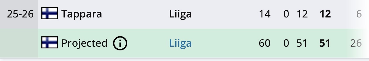 Hyvä kysymys, pitää koittaa kaivella jostain.Mikähän tuossa on Liigan ennätys? Sen muistan, että Tikka teki joskus takavuosina 0+20=20.