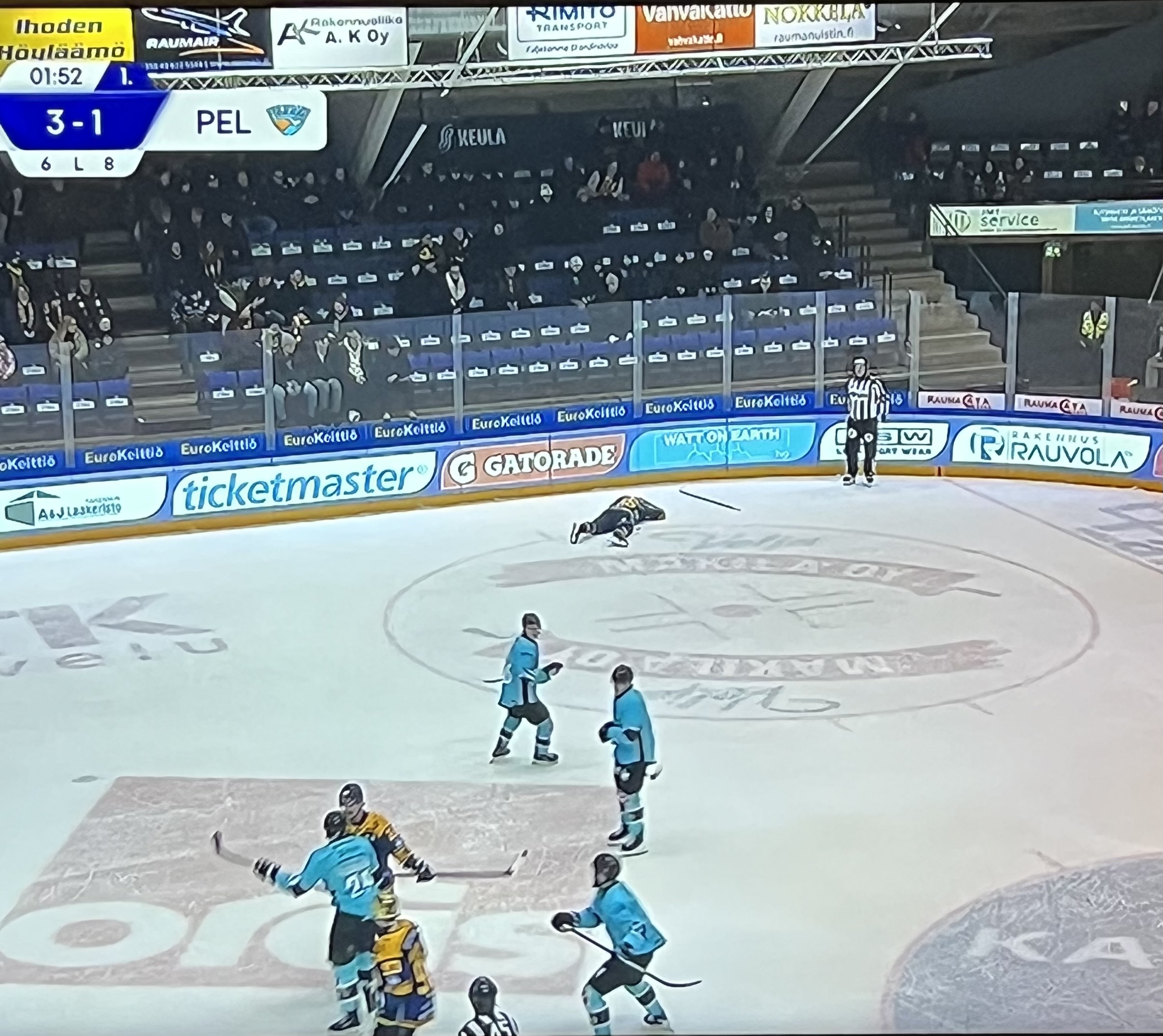Kysyin tämän illan toiselta päätuomarilta äsken minkälaiset ohjeistukset heillä on loukkaantuneita pelaajia koskien niin vastaus oli lyhyt "Lääkärit hoitaa".Vituttaa tää tuomareiden toiminta. Avauduin samasta siinä Alnefeltin tilanteessa. Tulee pääosuma ja kaveri jää päätään pidellen maahan makaan niin tuomari seisoo tumput suorana vieressä.