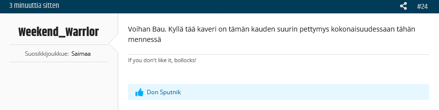 Jep Kärpillä sentään ykkönen ja yv toimii. Rosteriin nähden paskin jengi pelillisesti tämä Jokisen pumppu.Kyllä IFK on noita huonompi![]()