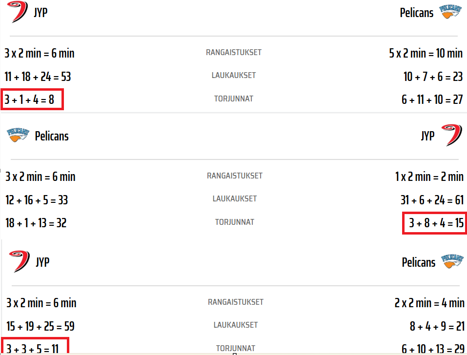 JYP oli erityisen haavoittuvainen isoine loukkaantumisineen varsinkin puolustuspäässä ja epävarman maalivahtipelinsä kanssa. Seuraava vastus ei tuollaista etua tarjoile.Siis joukkue, jolla ei ole ollenkaan hyökkäyspeliä, menee 3-0 jatkoon.