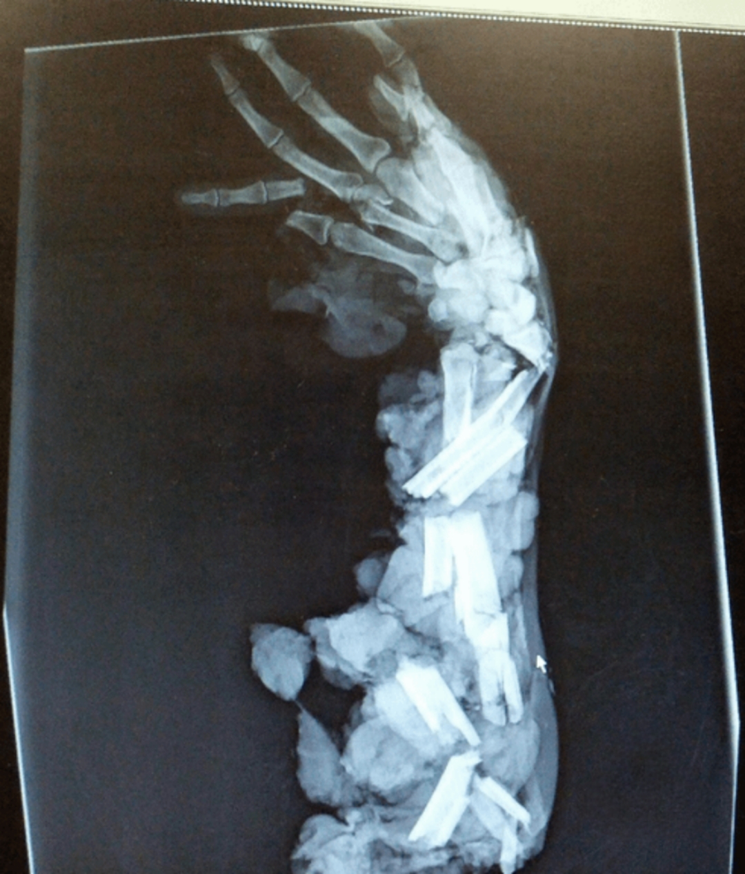 Eikö se muuten jalkaan osunu?Siis mää sain Lappalaisen röntgen kuvan haltuuni sen iskun jälkeen.