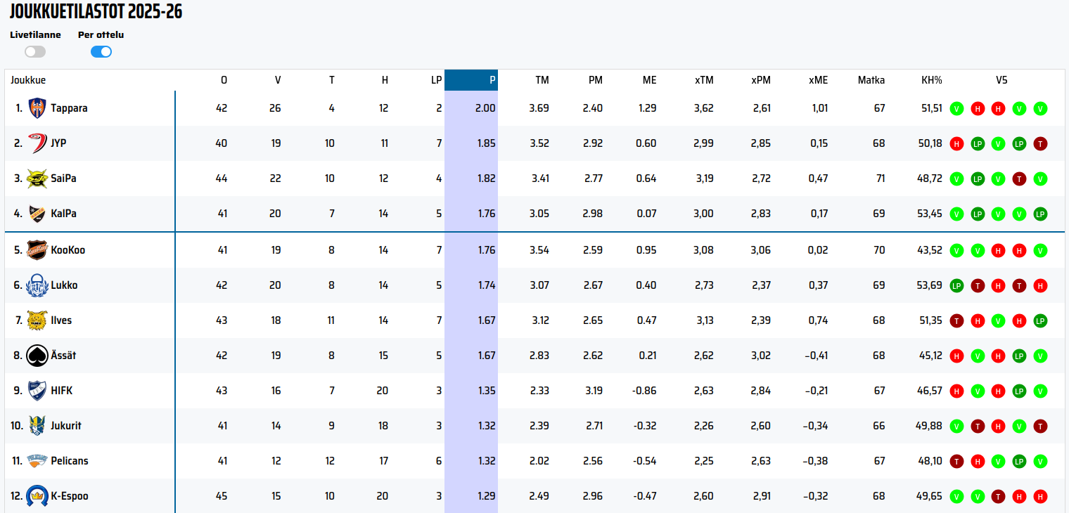 Me ollaan ryssitty tasaisissa peleissä aivan käsittämätön määrä pisteitä missä ollaan oltu pelin päällä. Kyllä me ollaan parempi joukkue kuin sija 7. Xg taulukossa aivan reilulla erolla ollaan toiseksi parhaita per ottelu, vain Tappara edellä. Tällä kaudella realistisesti uskon, että toisin kuin edellis kausilla niin pystytään parantamaan sijoitusta pudotuspeleissä.