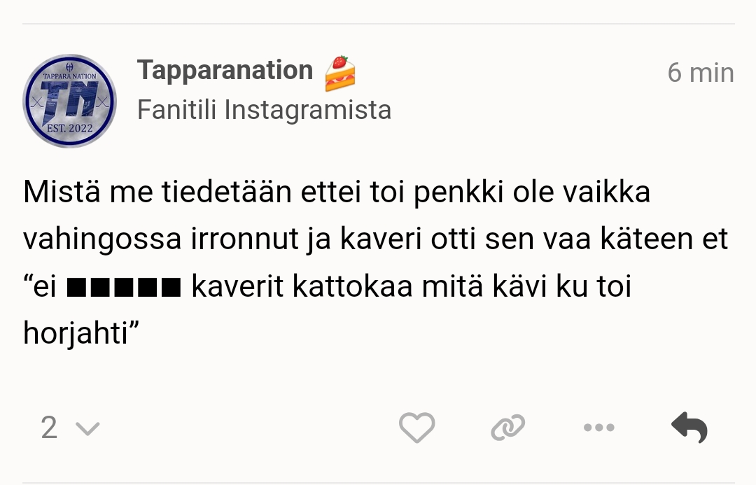 No siis tässähän ollaan oltu aivan paskoja viimeset 10-15 peliä niin kyllähän kritiikkiä saa antaa.Jos tää on totta niin kyllä naurattaaollaan täälläkin aika kriittisiä omia kohtaan, mutta tuskin suurimmalle osalle tulee mieleen jättää joukkue tukematta, vaikka tappio tulisikin.