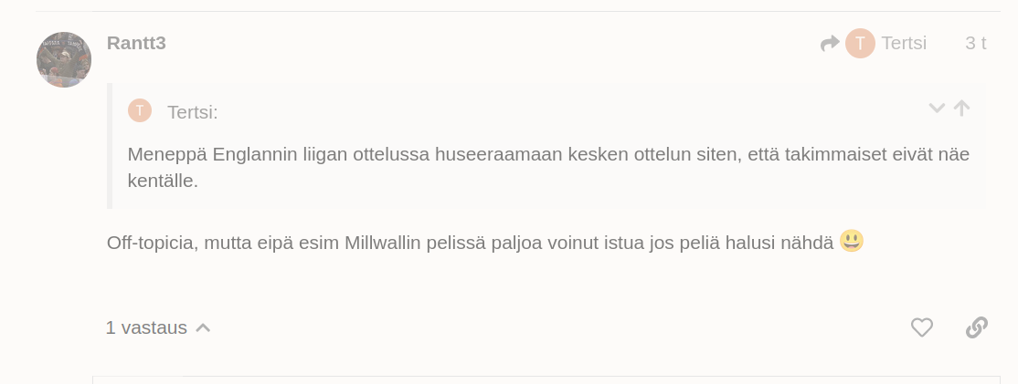 Juu vastaukseni tuohon sai myös liputusta kun ei mukaillut foorumin status quota. Miksi ne liput saavat foorumilla liehua kesken keskustelun, häiritsee seuraamista ja peittää näkyvyyttä, kirjaimellisesti.