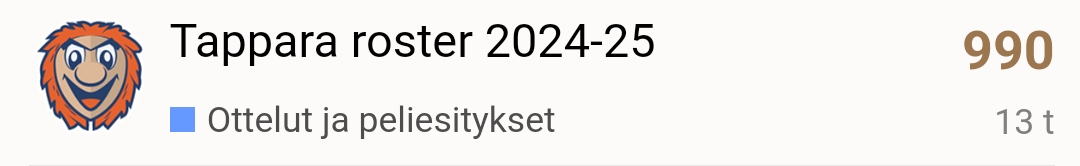 Tottahan tuokin on. Ovat kyllä saaneet valmistautua tuohon koska johtoryhmä on säilynyt samana tässä jo muutaman kauden ja kulttuuri valuu sieltä alaspäin. Että ei tämä mukavoitunut Kärpät minään yllätyksenä ole tullut. Ei siinä organisaatiossa yksinkertaisesti ole tarpeeksi näytönhaluja eikä kunnianhimoa menestykseen kun ei se niin pakko ole. Esimerkiksi sitten kun Jokerit joskus nousevat niin takuuvarmasti sieltä löytyy sitä näyttämisen halua aika rutosti, enkä olisi yllättynyt jos tulisi menestystä yhtä nopeasti kuin aikanansa Kärpille tuli kun nousivat 1. Divisioonasta.Toki me ei olla myöskään tuollaista ahdinkoa koettu.