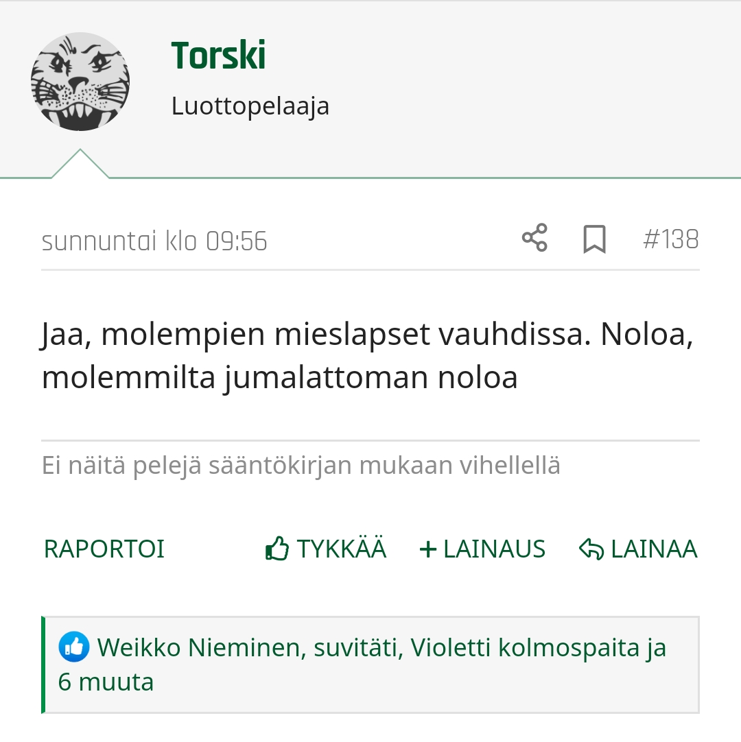 Jaaha, täällä ne pari kolme mustatakkista "lipunpäälläseisojaa" tykkäilevät toistensa "sivistävistä" viesteistä.