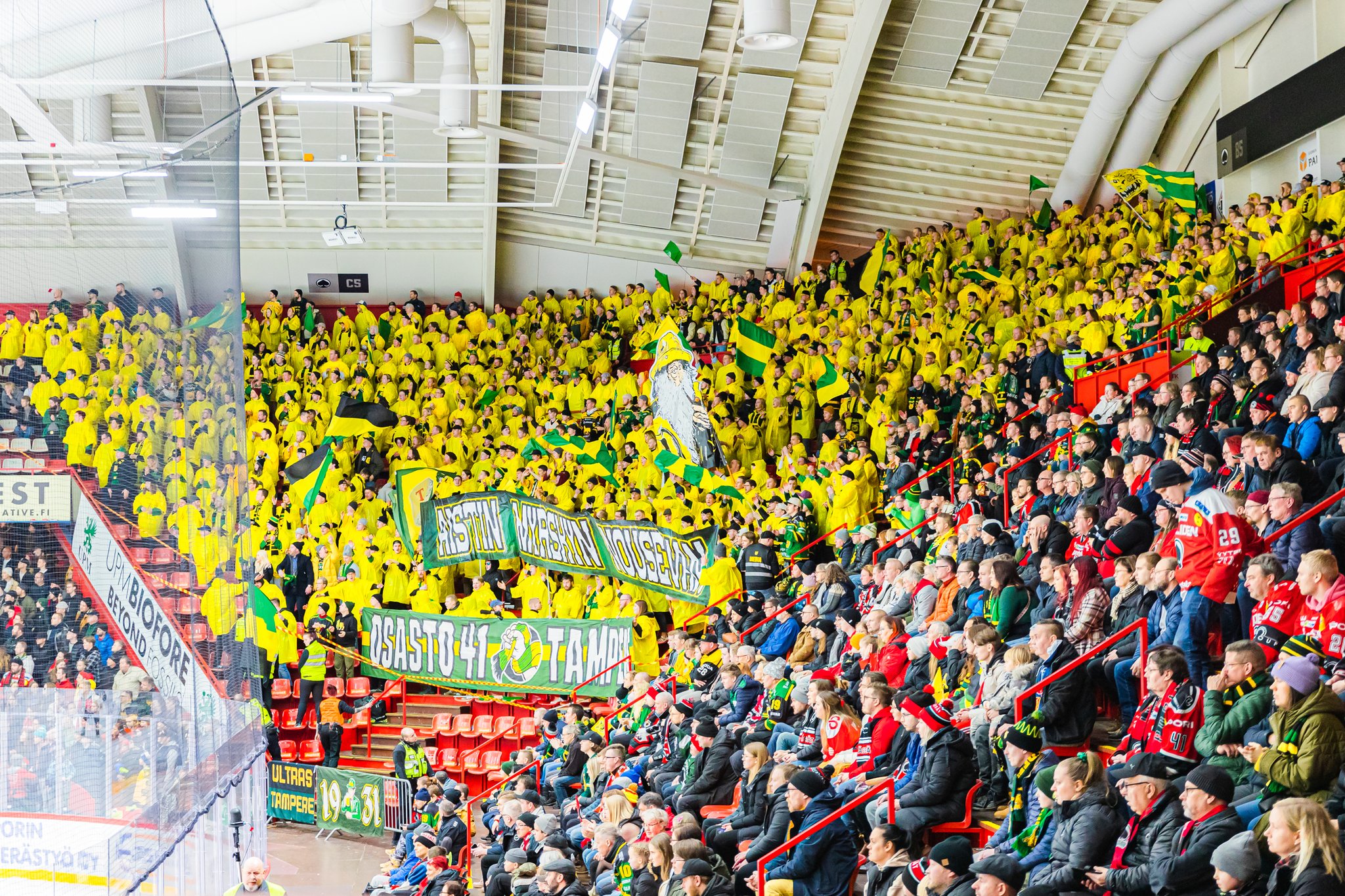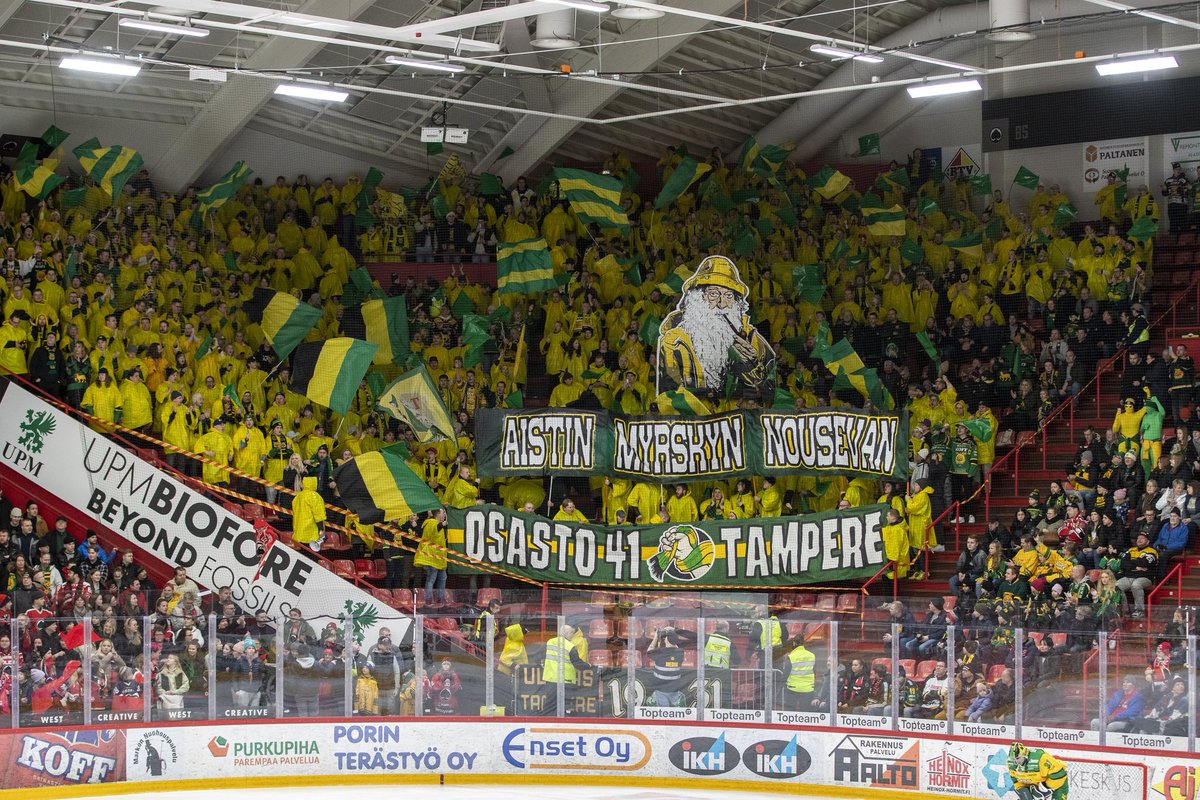 Samaan olen kiinnittänyt huomiota. Pelaajat kyyristymässä aloitukseen taustalla heiluvien lippujen säestyksellä, ei ole kauniimpaa. Aika monessa Ilveksen fiilisvideossakin vastaava asetelma vilahtanut.