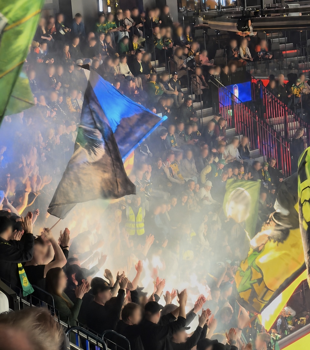 En pidä kuitenkaan fiksuna strobojen polttelua hallissa, eivät tietenkään savuta yhtä paljon kuin soihdut mutta silti. Kyllä se savu ruudulta ainakin näkyi ja ymmärrän miksi ottelu haluttiin keskeyttää, ollaan kuitenkin sisätiloissa missä tuhansia ihmisiä. Säästetään tämmöset mielummin Tammelaan