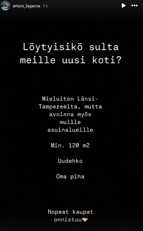 Jos mulla olisi rahaa kuin rosvopäälliköllä, niin hankkisin useammankin kämpän Tampereelta - ts. ei kerro mitään.Arttu Ilomäki on etsimässä taloa Tampereelta Instagram-tarinoiden kautta. Onko paluu Ipaan tai mouhoihin edessä?