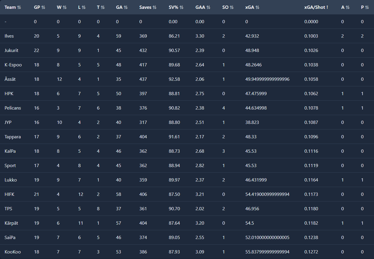 - Ottakaa silti huomioon, että Ilves ei ole taulukossa esim. mitäänsanomattomasti keskivaiheilla, vaan vastaanottanut kaikista vähiten / keskimääräisen vastaanotetun laukauksen xG on kaikista pienin.