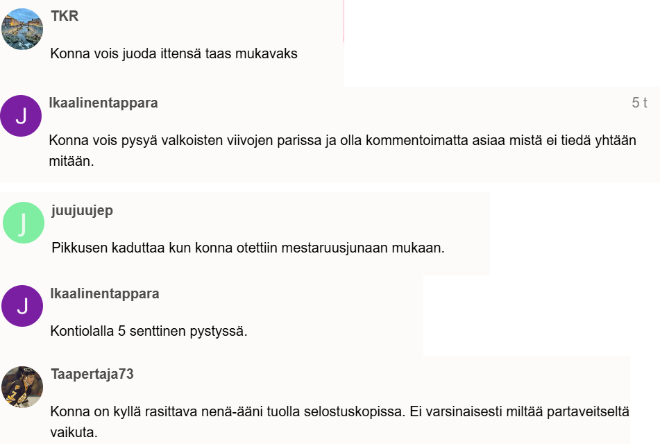 Muistelen miten viime kaudella tuli Ilvekselle kuittia Konnasta, että halus palata voittavaan jengiin ja otettiin mies avosylin vastaan. Nyt sit jo kuskataan bussin alle kommenteista, jotka on vielä täysin totta