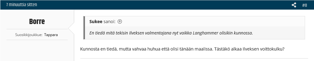 Tuulola pelasi tiistaina kevään parhaan pelinsä, mutta tiedä näistä. Ekassa erässä oli ainakin kunnon härkä.