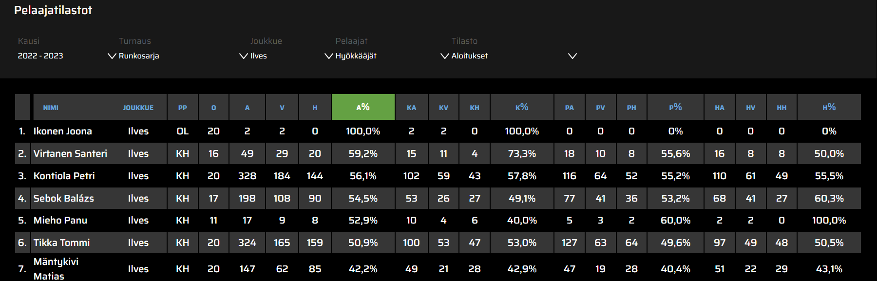 Nää Tikan aloitukset on kyllä ihmetyttänyt itseäni. Mulla ei ole siis mitään tilastoja, että voin olla ihan väärässä tän mutuni kanssa.Kyllä Tikalta vähän käsiäkin löytyy. Yllättävän heikko aloitusprosentti, mutta taitaa joutua usein vastustajan parasta aloittajaa vastaan. On ollut Ilvekselle sitä mitä lääkäri määrää ja pudotuspeleissä vastustajilla ei tule olemaan kivaa.