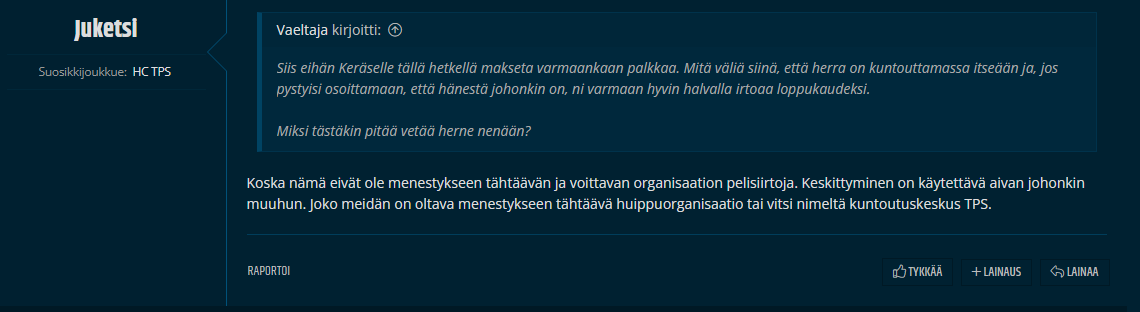 Alkaa kuulostaa Tepsin hankinnat siltä, että Supercellin pojat tosiaan pistää kioskin kiinni. Janne Keränen ja Terry Broadhurst. Ok. Keränen viime kaudella Sportissa 55. peliä 7+7 ja alkukausi pelaamatta. Broadhurst sama homma. Hän nyt voi ollakin jonkinlainen pelimies vielä alempiin ketjuihin, mutta tuo Keränen menee jo huumorihommiksi.