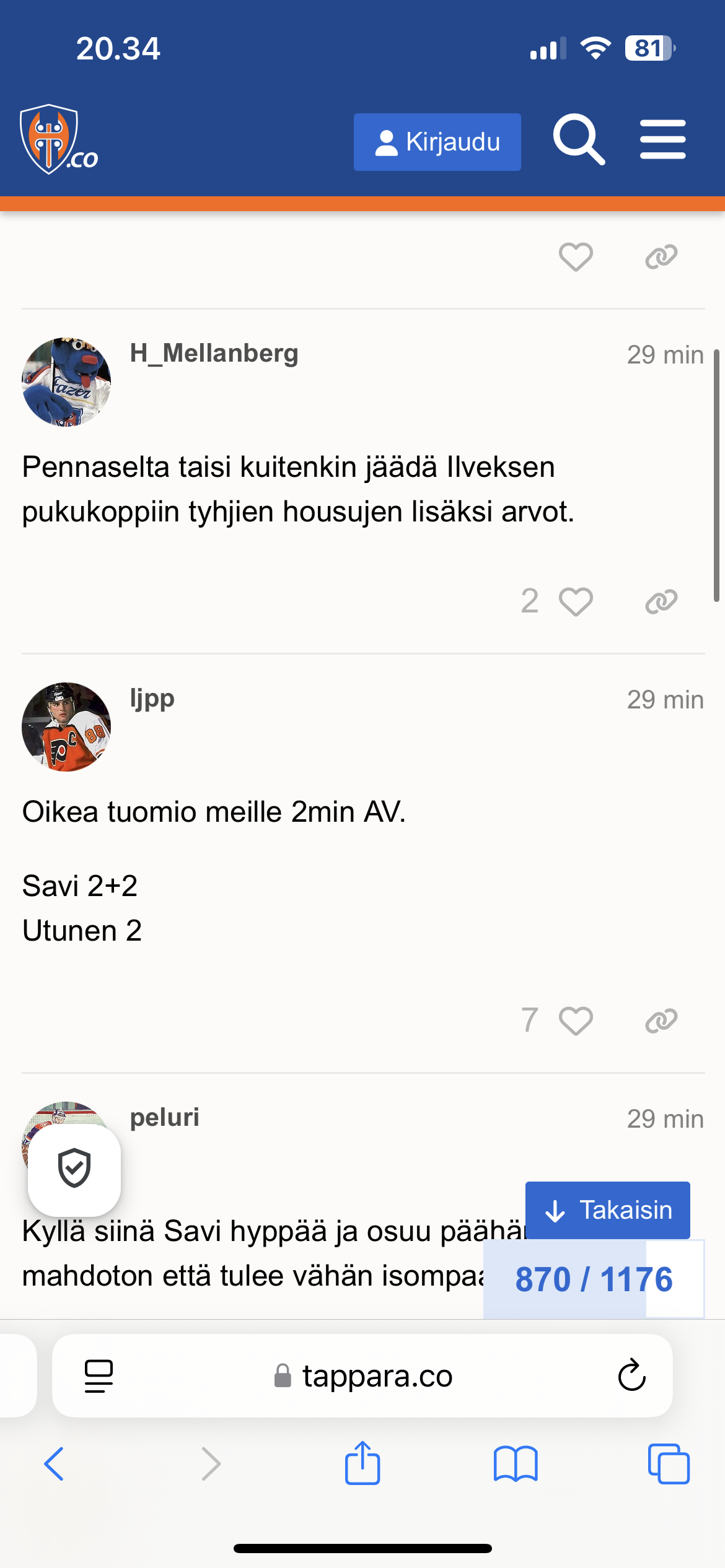 Tulosveikkaus ja otteluseuranta Ilves - Tappara 26.3.2025 | Game 1