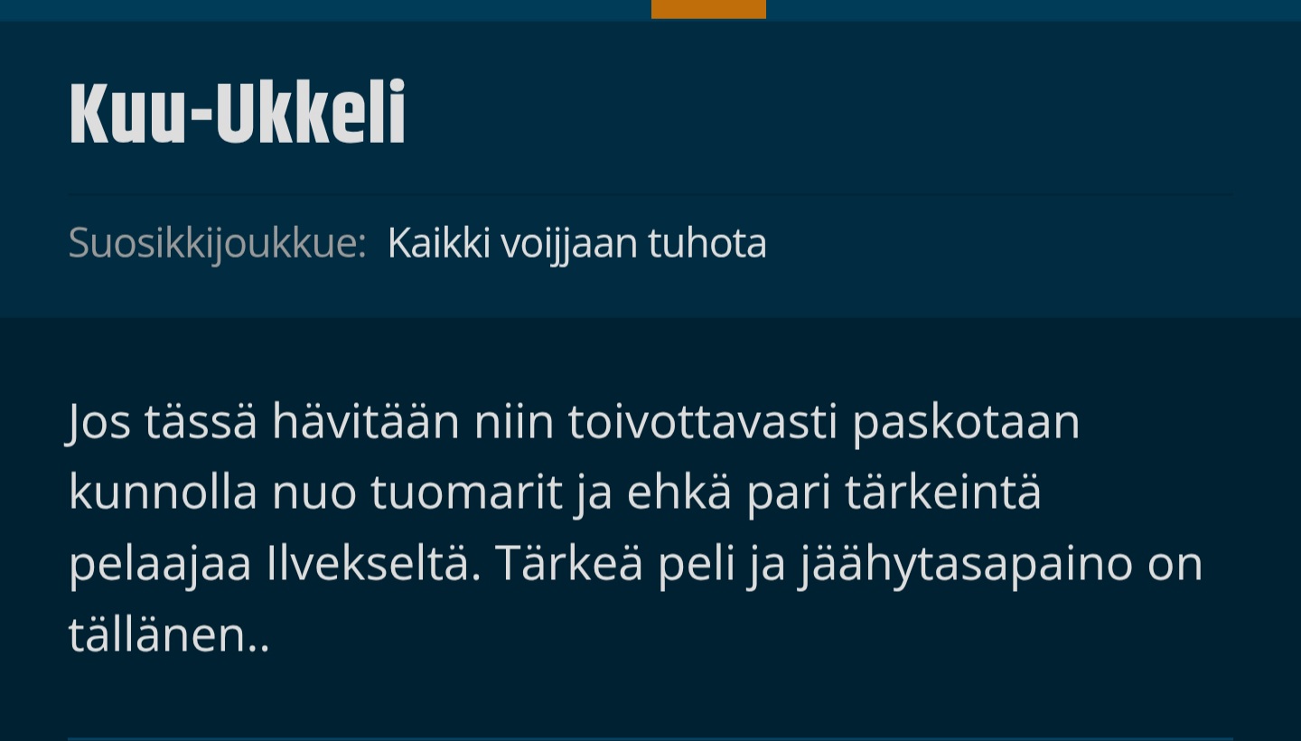 • Moro! Perinteinen Ilvesfoorumin kevätveikkaus järjestetään nyt jo kymmenettä kertaa. Suuren suosion saavuttanut veikkaus järjestetään omassa osiossaan täällä. Kaikki joukolla mukaan, ja veikkausonnea!