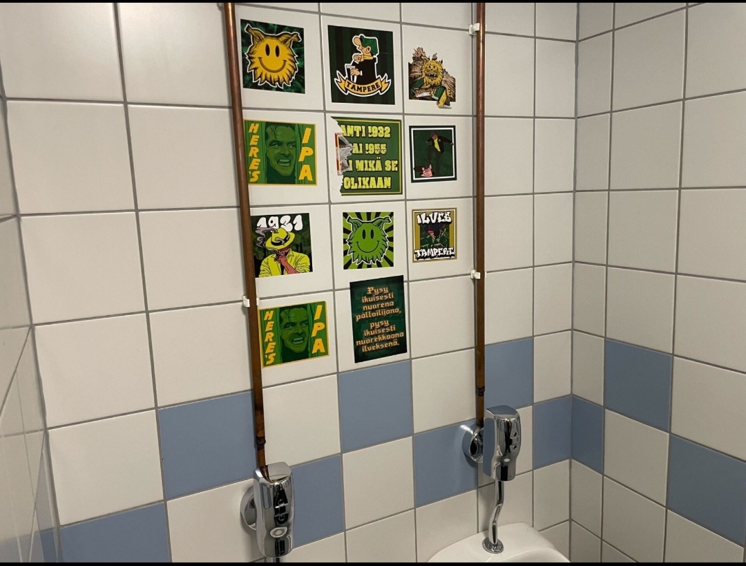 Oletin että tässä nyt nimenomaan vieraskatsomon vessoista puhuttiin. Se nyt on itsestäänselvyys että meidän vessoihin ei muiden tarroja tule.