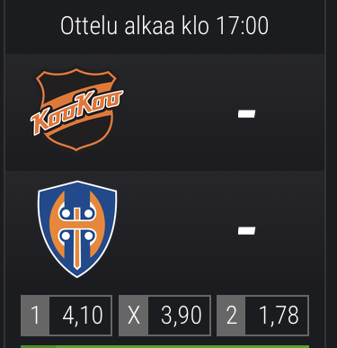 Jos on Ilveksellä ylikerroin illan otteluun, niin entäs KooKoolla sitten? KooKoo ei siis ole kotonaan vielä hävinnyt varsinaisella peliajalla.