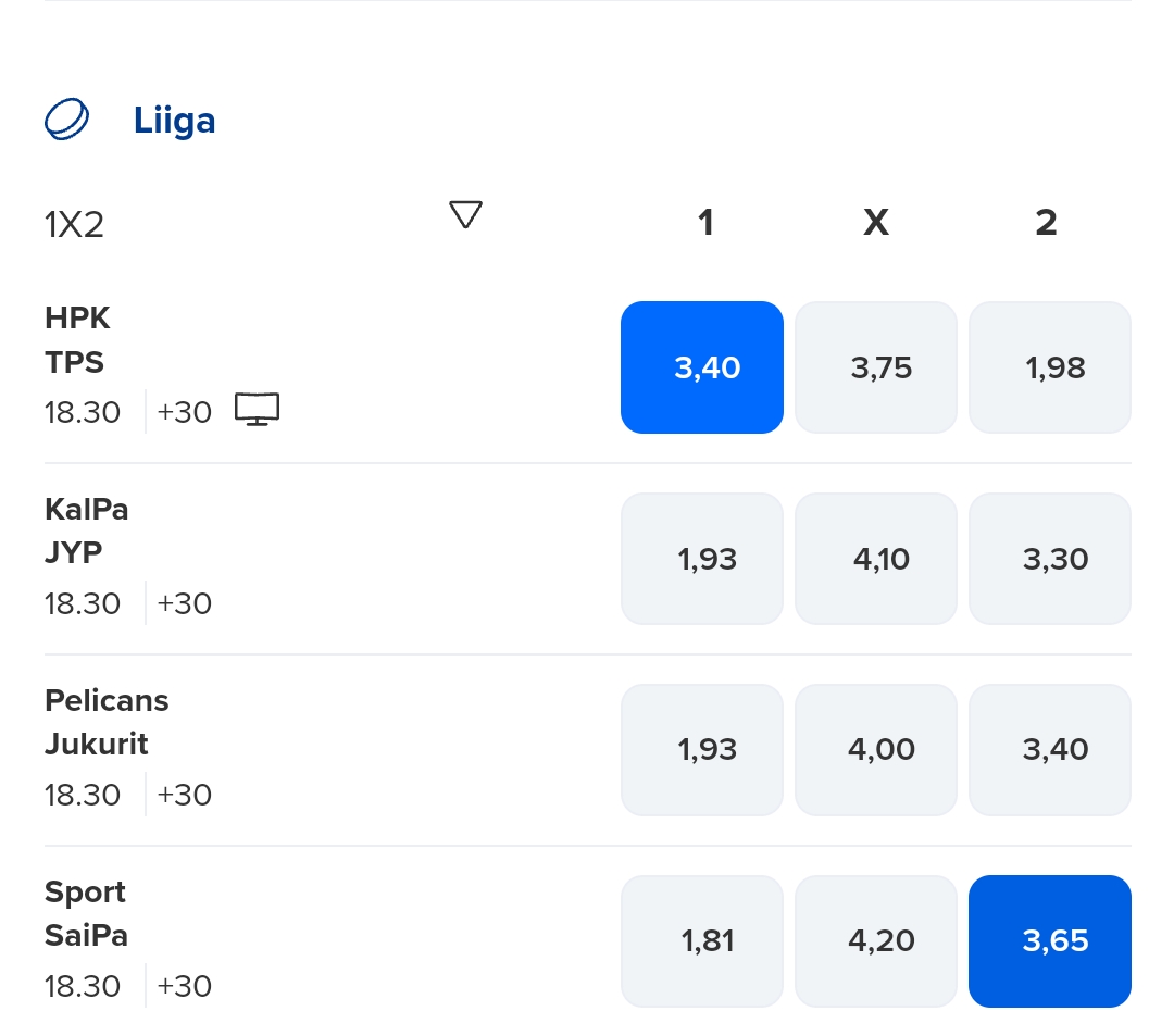 Muut kohteet voisikin pelata kotivoittoina, mutta ikävästi jäädään alle 2 kertoimen joten jää vetämättä. Elikäs oma lottorivi tälle päivälle on 1, 1, 1, 2