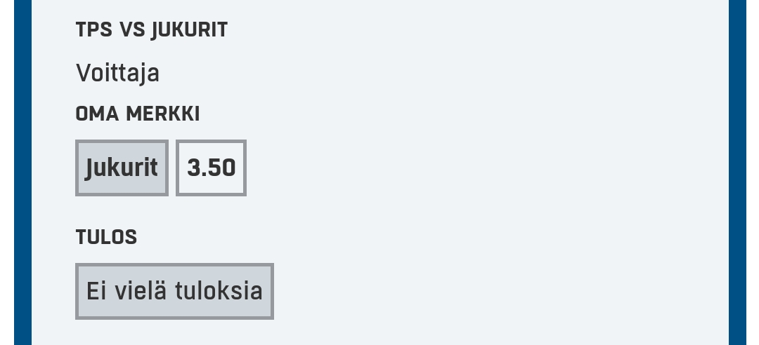 Olenko ihan sokea vai enkö vaan osaa, mutta olen etsinyt moneen otteeseen tänään veikkauksen sivuilta. Mistä kohde löytyy?